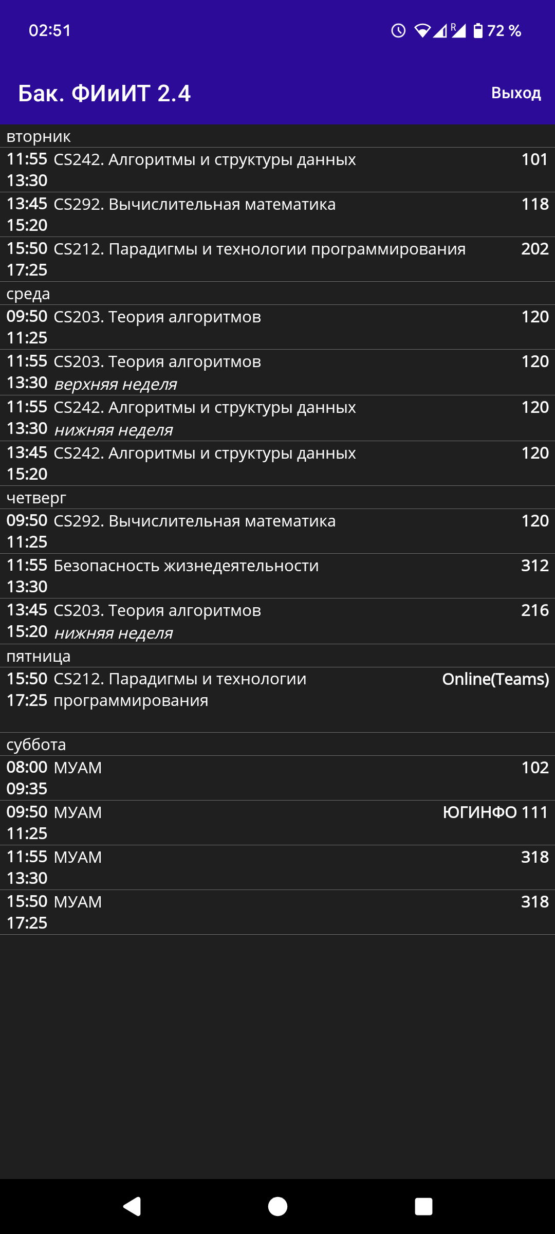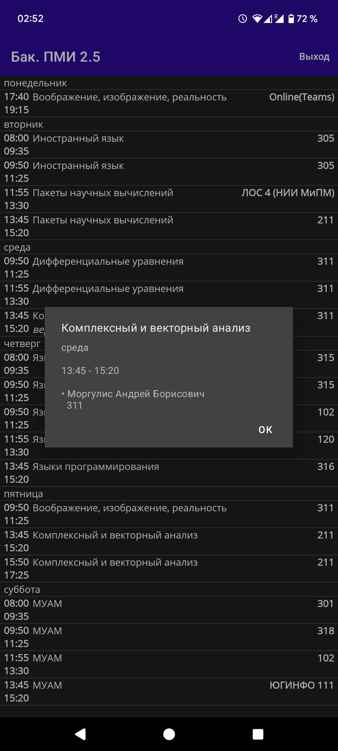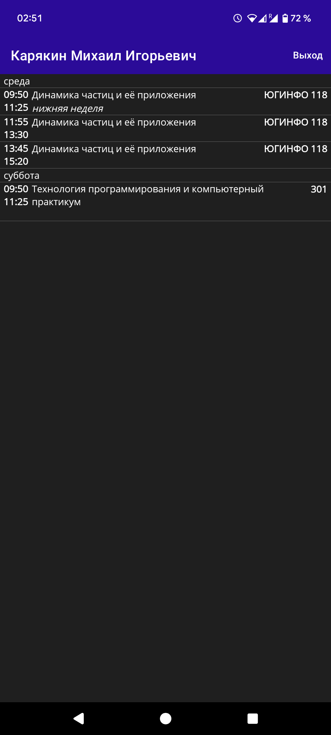 Учёба на мехмате — это непросто, а вот найти своё расписание теперь легко. Это приложение создано специально для студентов и преподавателей Института математики, механики и компьютерных наук Южного федерального университета. Выбирай курс и группу, если ты студент, или вводи фамилию, если преподаватель, — и актуальное расписание сразу у тебя в кармане. Данные автоматически обновляются с сайта интерактивного расписания, так что ты всегда знаешь, где и когда следующая пара.